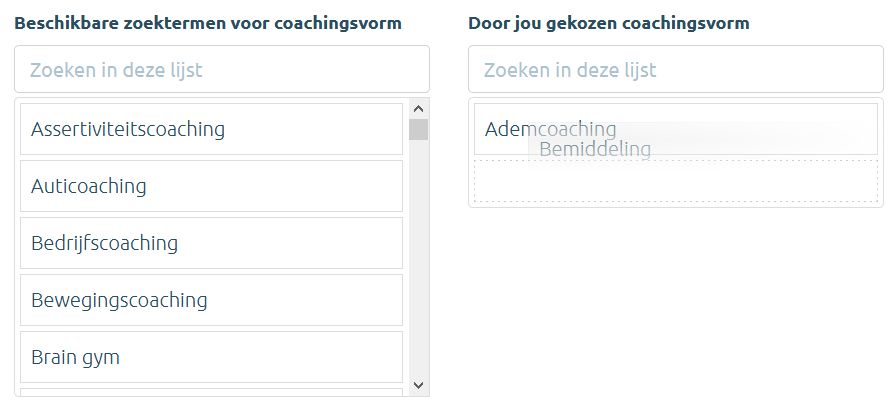 Zorg er bv. voor dat je profiel optimaal vindbaar is voor zij die zoeken naar online behandelingen door alle gerelateerde zoektermen te selecteren.